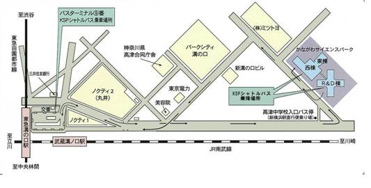 南武線"武蔵溝ノ口駅"、東急田園都市線他"溝の口駅"下車KSP行シャトルバス
